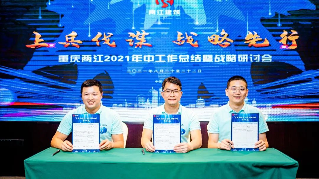 21日晚,两天的研讨成果提炼出了下半年工作开展的具体指令,并最终形成了一份份沉甸甸的军令状。总经理带领职能负责人与董事长共同签署,誓言既立、使命必达。我们期待各职能部门交出的满分答卷。