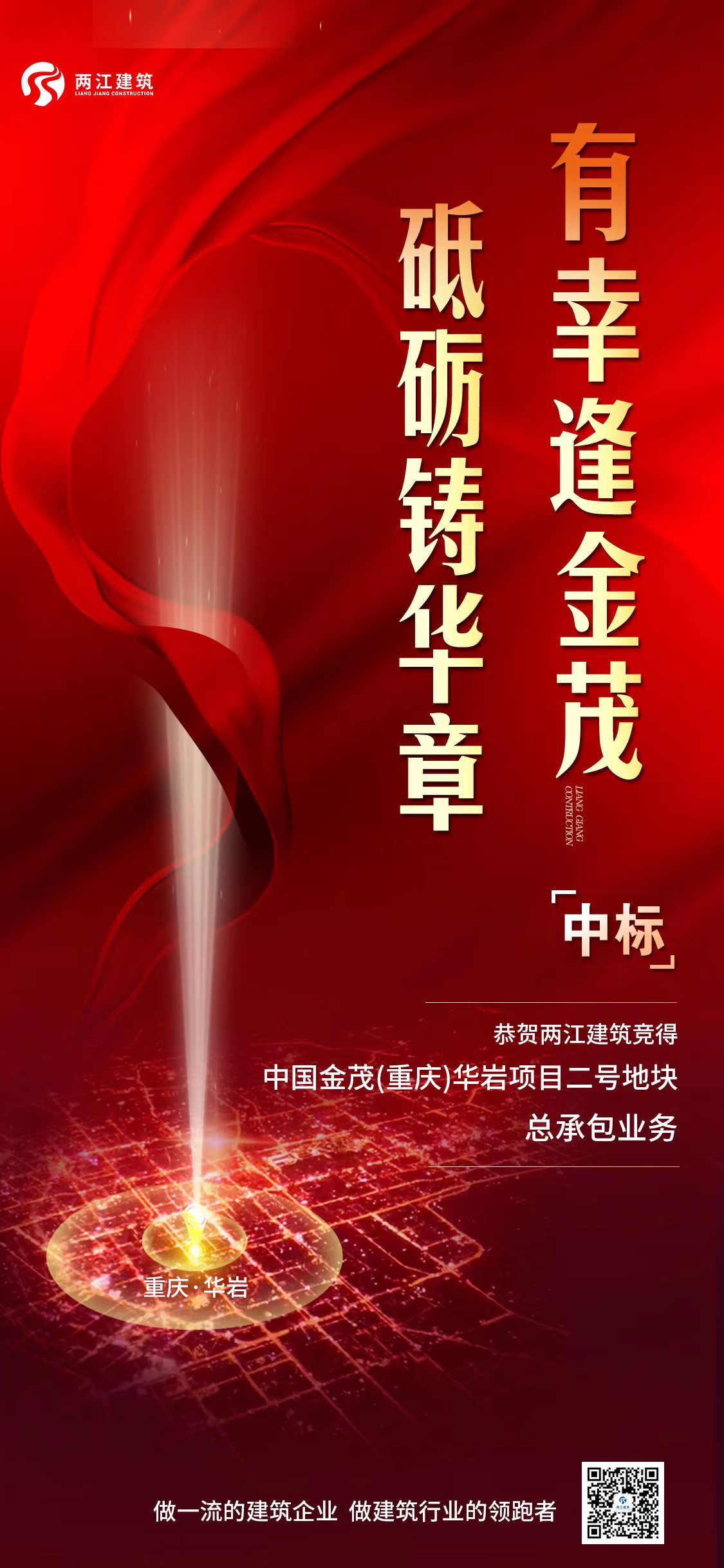 夏风张扬,七月别样。两江建筑砥砺奋发、笃行不怠、拼荆斩棘,凭借在工程建设领域的卓越表现,公司竞得中国金茂华岩项目2号地块总承包业务。